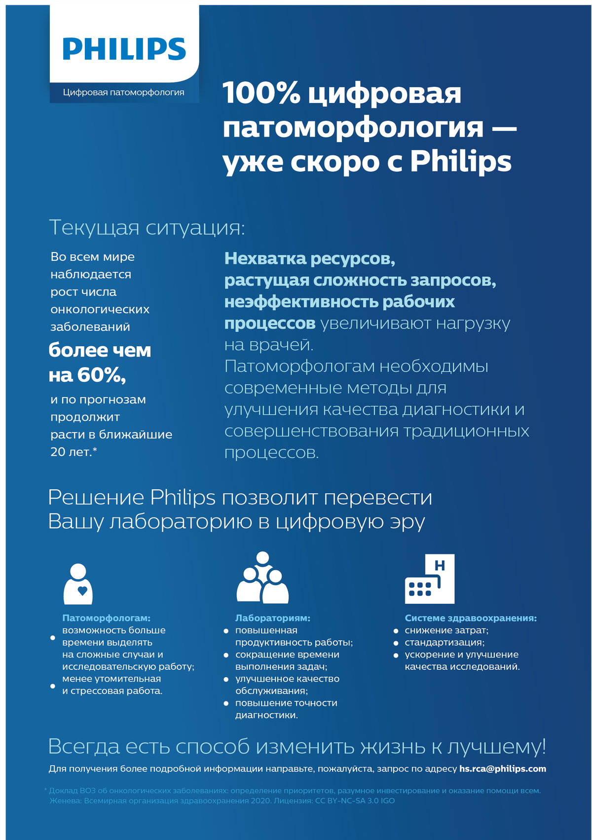 Royal Philips (NYSE: PHG, AEX: PHIA) – это ведущая технологическая компания, нацеленная на улучшение качества жизни людей на всех этапах континуума здоровья – от ведения здорового образа жизни, профилактики и ранней диагностики до лечения и ухода на дому. Philips обладает глубокой экспертизой в сфере потребительских товаров и здравоохранении и использует передовые технологии для предоставления комплексных решений. Компания занимает лидирующие позиции в области медицинской визуализации, мониторинга пациентов и ИТ-систем, а также решений для персонального ухода и техники для дома. Штаб-квартира Philips находится в Нидерландах. В 2020 году объем продаж решений Philips для здоровья и здравоохранения составил 19,5 млрд евро. В компании работают 82 000 сотрудников более чем в 100 странах. Новости о компании Philips вы сможете найти на веб-сайте http://www.philips.ru/newscenter.